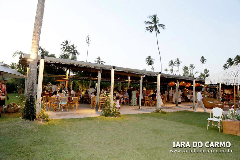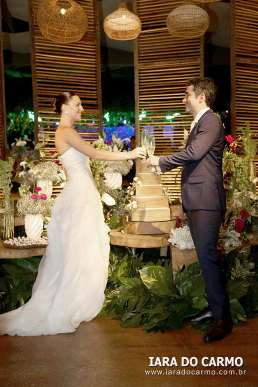 Após a cerimônia os noivos e seus convidados se dirigiram para o local da recepção. Para compor a decoração com toque praiano, arranjos florais por toda parte, folhagens, frutas, vários itens rústicos, requintado mobiliário em madeira e estofados. O menu foi bem completo com várias ilhas gastronômicas, mesas de frios, pratos quentes, massas, enfim pratos diversos, desde os mais sofisticadas até os mais clássicos. A mesa e doces foi um dos destaques da decoração, com uma grande variedade de doces e o bolo de rolo em meio a uma grande variedade de flores e folhagens, transmitindo a atmosfera festiva do ambiente. Após a dança dos noivos, brindes, fotos com os pais e corte no bolo, a pista de dança sob o comando de Dj e Banda se tornou o epicentro da festa. Os convidados curtiram uma noite animadíssima, tendo como inspiração Duda e Bernardo, não faltando nesse evento nenhum detalhe de bom gosto, glamour, sofisticação e muita alegria.