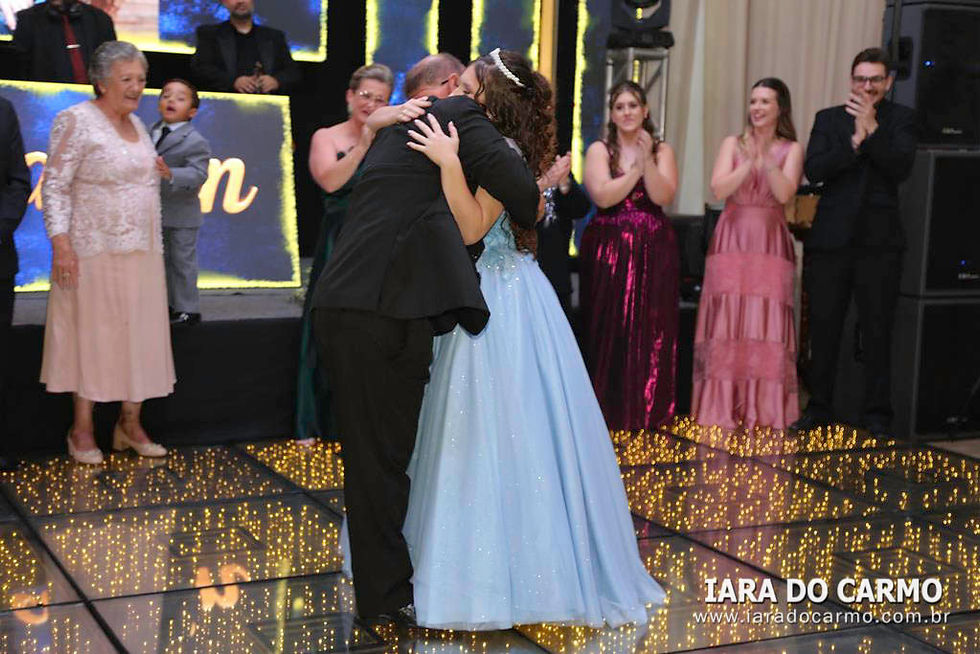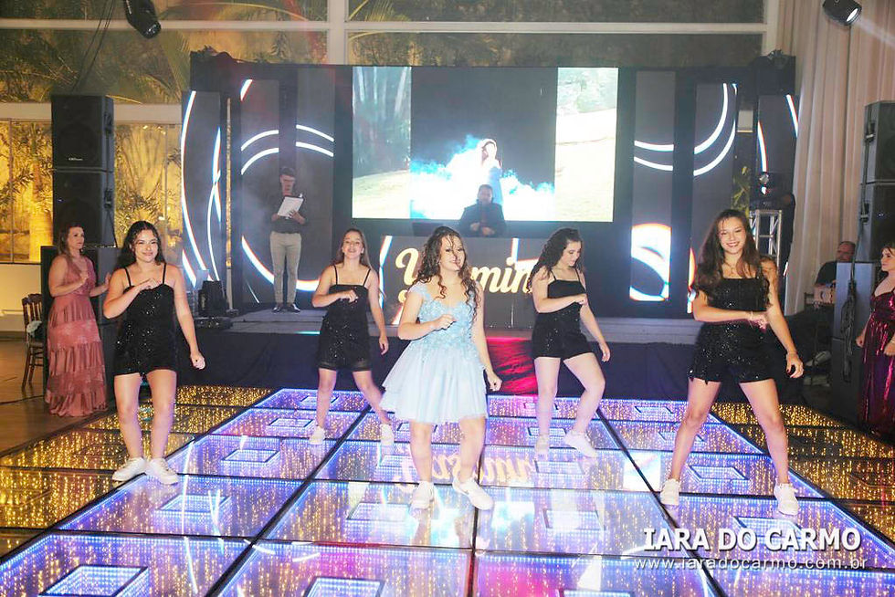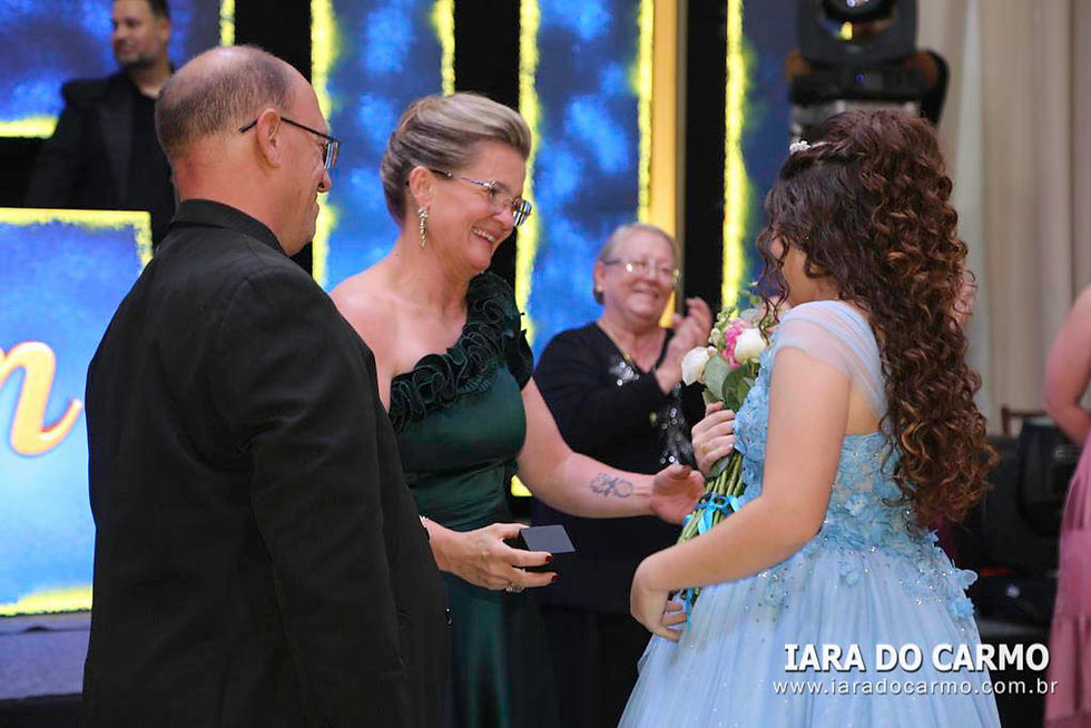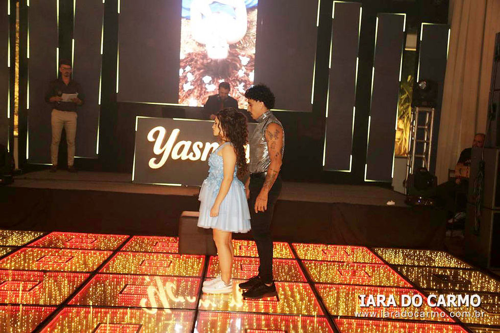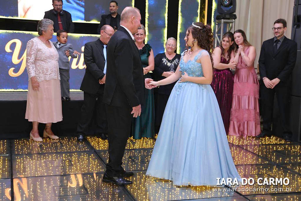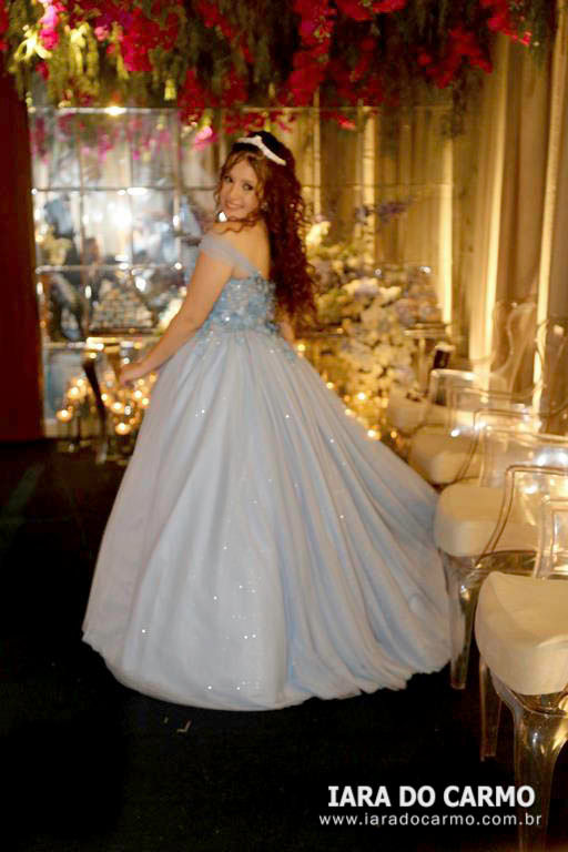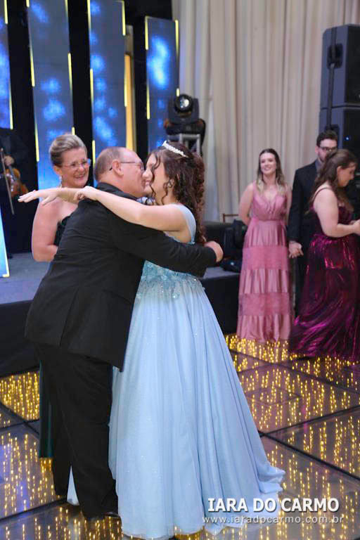 Às 22h45, irradiando charme e simpatia, Yasmin surgiu deslumbrante, vestindo um modelo princesa azul claro, com corset estruturado, saia com leve brilho, e o toque charmoso de uma tiara fininha, tudo com assinatura de Magali Zuanetti, para os momentos mais emocionantes da festa: a valsa com o pai Sandro, com o avô e padrinho Lupércio Romanin e com o tio Paulo Romanin. Em seguida, momentos especiais e emocionantes com a entrega do anel pelos pais, as homenagens de uma forma carinhosa das amigas, e uma retrospectiva da aniversariante no telão. Na sequência, os ‘parabéns’ coletivo, cheio de boas energias tomaram conta do salão. Depois da emoção da valsa, Yasmin voltou com um traje curto bem moderno para abrir a pista de dança, e fez uma apresentação com as irmãs Karolyne e Raissa, com as amigas Sophia, Rafaely, Ana Clara e Júlia, e com Aislan Souza, encantando a todos com uma coreografia animada. A pista de dança, Xico Pista de Led, de Rafael Pachoal, sob o comando do Dj Serginho Melhado se tornou o epicentro da festa com os adereços distribuídos e todos envolvidos no clima colorido, na energia contagiante e alto astral da festa. Os bartenders da Yianá Coquetelaria Personalizada assinaram os coquetéis especiais e mocktails temáticos. Na saída todos levavam de lembrança velas aromatizadas. Essa data, marcante e especial, será lembrada como um marco na vida de Yasmin que realizou um grande sonho, celebrado com amor, estilo e emoção.